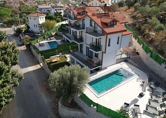 4の寝室のVilla Bag Tepesiは,Fethiye Motor Kiralamaから徒歩7分以下です. 庭園の景色を望む宿泊施設で,パティオ,バルコニ- とワ-クデスク付きの客室を提供しています.